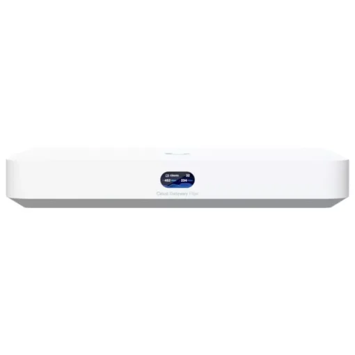 Ubiquiti’s UCG-FIBER is a desktop 10Gbps dual WAN, UniFi cloud gateway with selectable NVR storage via SSD up to 2TB. The unit runs the complete UniFi application suite for full stack network management and features 1x 10Gbps WAN port, 4x 2.5Gbps LAN Ports, one with 802.3at (PoE+) PoE output, as well as 2 x SFP+ ports.